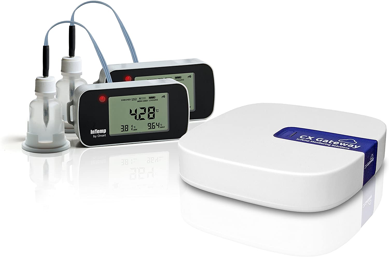 The CX Gateway links your InTemp data loggers seamlessly to the InTempConnect cloud-based data platform to provide real-time alert notifications for InTemp loggers automatically. Just place the Gateway within a 100-foot range of one or more loggers and connect it to your local Wi-Fi or Ethernet. If an excursion occurs, alerts can be sent from InTempConnect via email and text to a user-defined group of administrators.