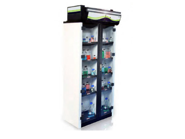 Fan double speed control | double speed setting for fan, while the door is closed and another while open. To ensure the chemical vapours are remove when the user open the door to retrieve the chemicals. |