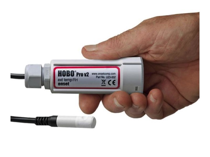 The HOBO Pro v2 External Temperature/Relative Humidity Data Logger is a weatherproof data logger with an external Temperature and Relative Humidity sensor on a 6-foot cable for fast sensor response and deployment in tight spaces. The Relative Humidity sensor features fast response and superior durability in humid environments, and is user-replaceable.