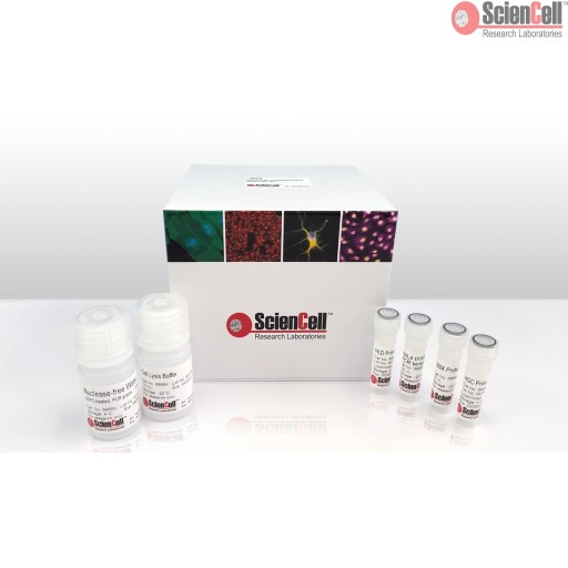 ScienCell™ Mycoplasma PCR Detection Kit is a 16S rRNA-based PCR assay consisting of 2×PCR master mix (which includes PCR buffer, DNA polymerase and dNTPs), mycoplasma primer set, and a positive control, which is noninfectious genomic DNA (gDNA) of M. fermentans. The genus-specific primer set recognizes the five typical contaminating mycoplasma species (i.e., M. hyorhinis, M. arginini, M. orale, M. fermentans, and A. laidlawi), which account for 98% of contamination, as well as members of the genera Ureaplasma, Spiroplasma, and Acholeplasma, which account for the remaining 2% of contamination.