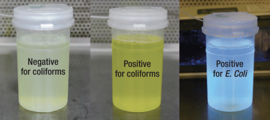 Visually check each sample for vibrant yellow colour, indicating presence of coliform bacteria.