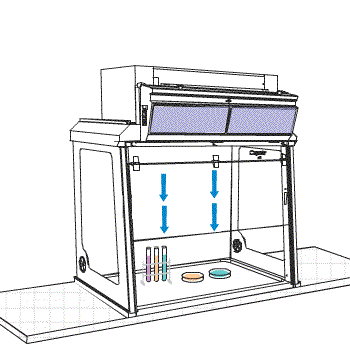 DNA/RNA Free Workstation : Positive airflow applied inside the enclosure through a high efficiency particulate filter