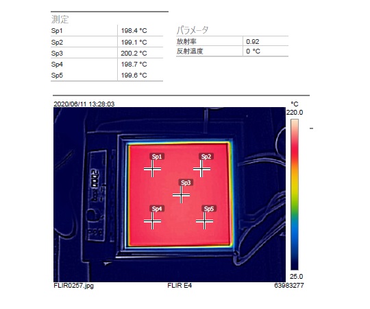 - It heats up to the maximum temperature in about 30 minutes. The top plate temperature distribution width is 4℃ (when 200℃ is set)